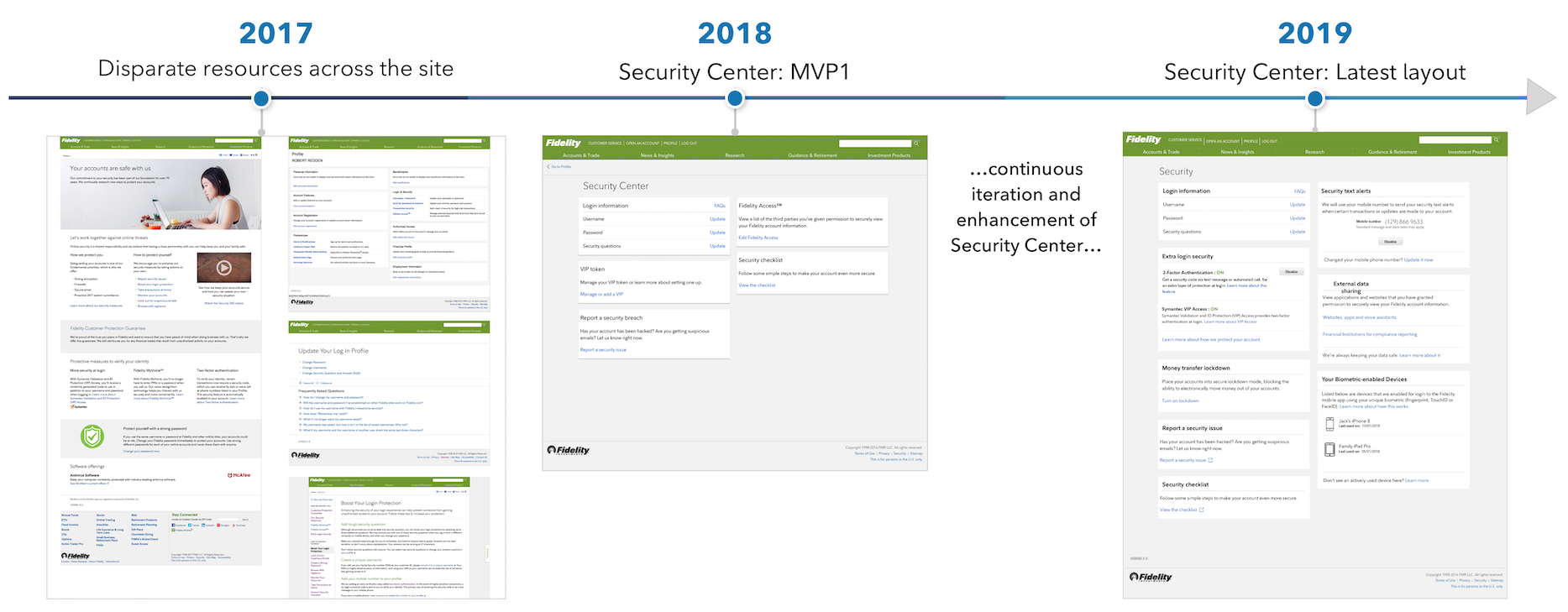 We want to lead the way in giving customers easy access to the information they need, while ensuring security is deeply embedded in every aspect of the Fidelity platform. With the recent introduction of two-factor authentication to make customer accounts more secure, I took the opportunity to create a vision of our ideal login experience. The primary goal was to provide customers a singular and cohesive login experience independent of where they were coming from.